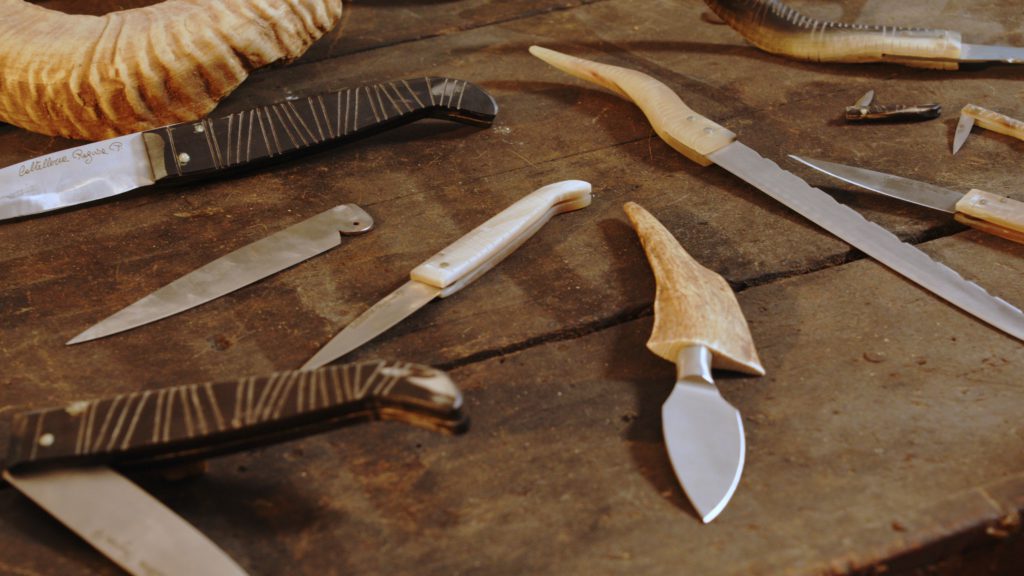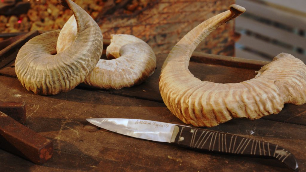 Mastering this craft requires specific skills and access to certain raw materials, particularly goat and sheep horn, which are used to fashion the handle—one of the defining features of the Bisacquino knife. From a material culture perspective, the knife embodies a dialogue between two distinct material elements: the “natural” substance of the animal horn used for the handle and the forged steel of the blade. The process of shaping and finishing the horn—known locally as abbruscatura—is a highly specialized technique that requires dexterity and experiential knowledge passed down through apprenticeship.